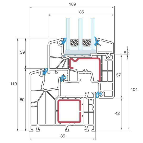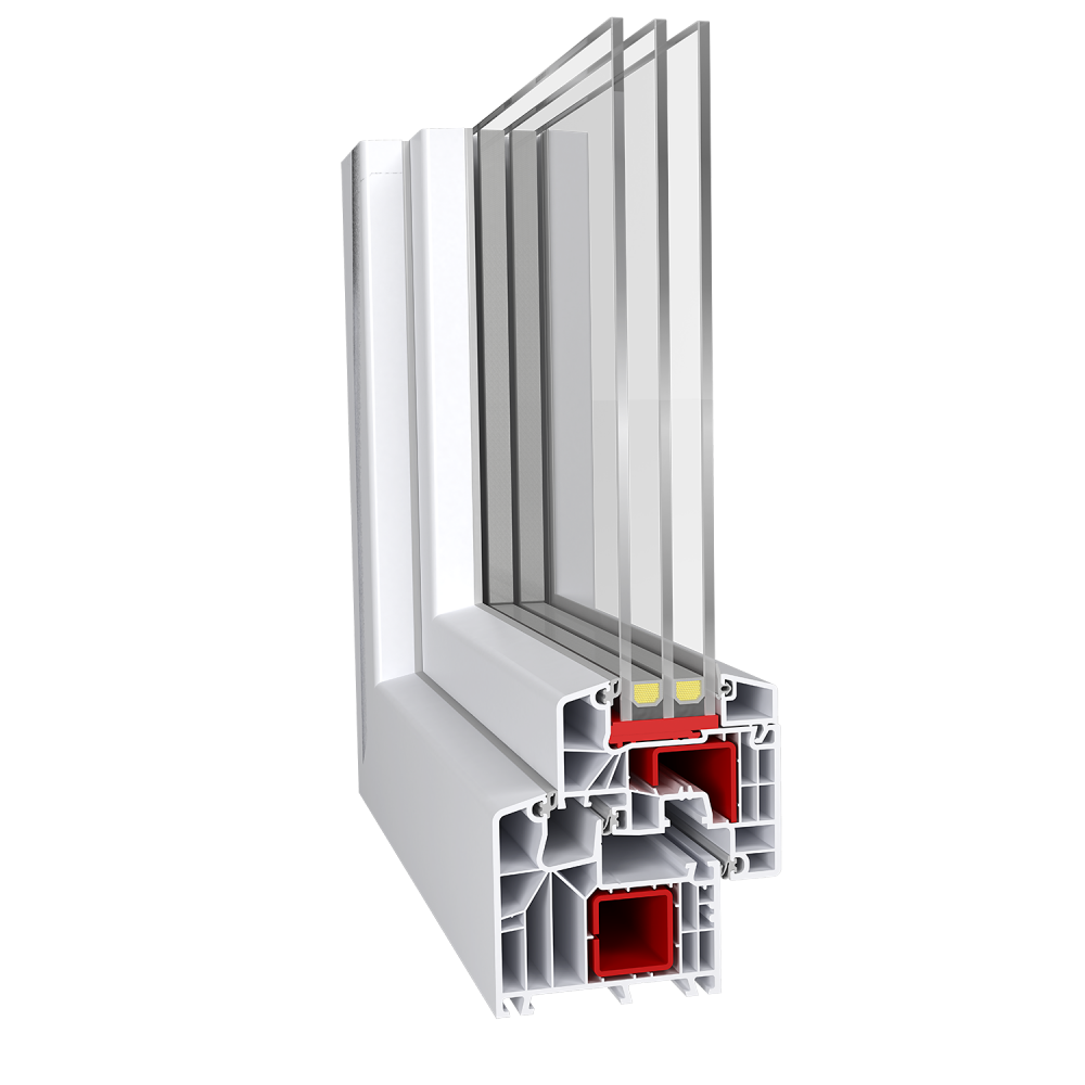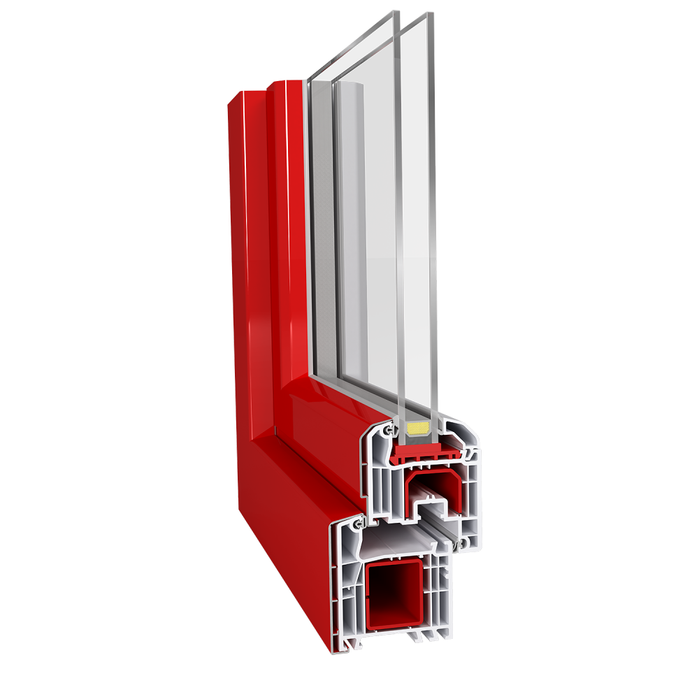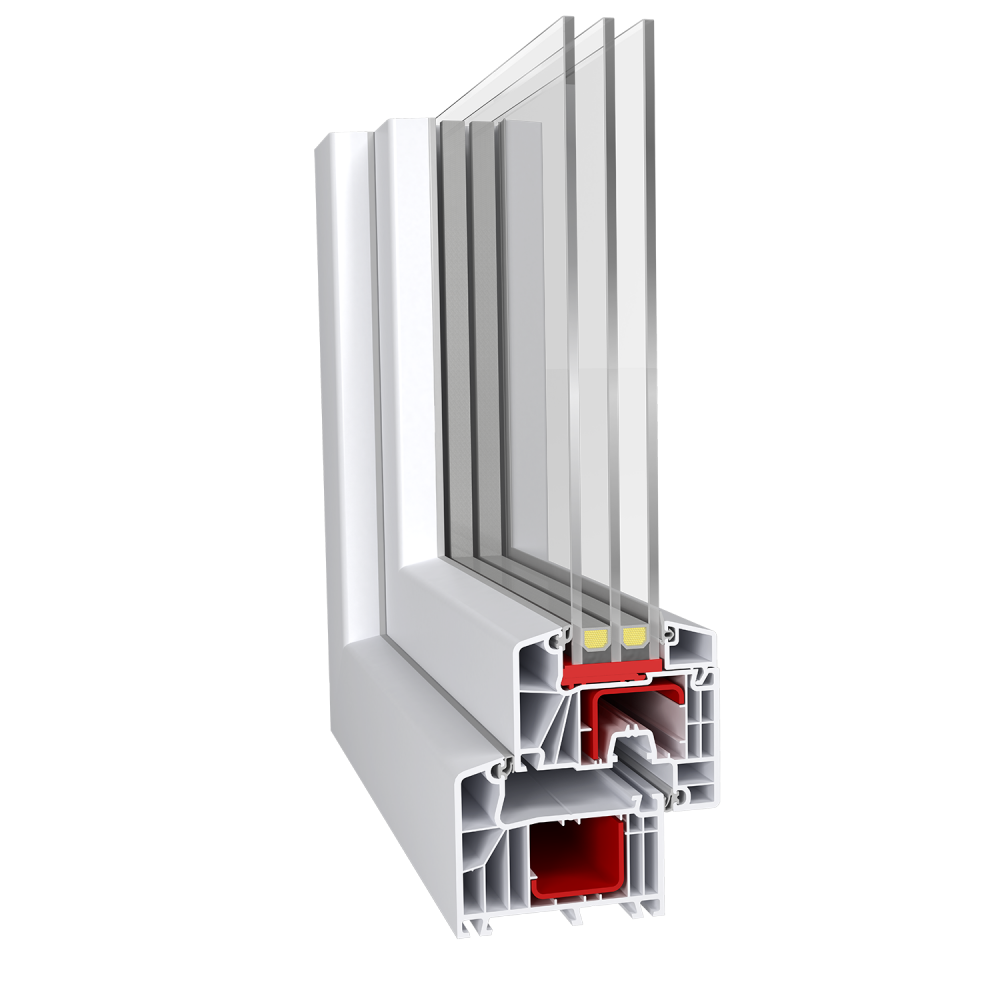 6 légkamrás műanyag profilszerkezettel szerelt, világos szürke tömítéssel ellátott, fehér vagy színes fóliás kivitelben is rendelhető németgyártmányú nyílászárócsalád, melyet alapesetben 4-16-4-es Low-E Ug=1.0 bevonatos üvegezéssel adunk. Tökéletes választás azoknak akik lakásaikba műanyag nyílászáróval szeretnék növelni hő-és hangszigetelést, illetve akik régi nyílászáróikat valami modernebb darabra cserélnék, akárcsak esztétikai szempontból is.